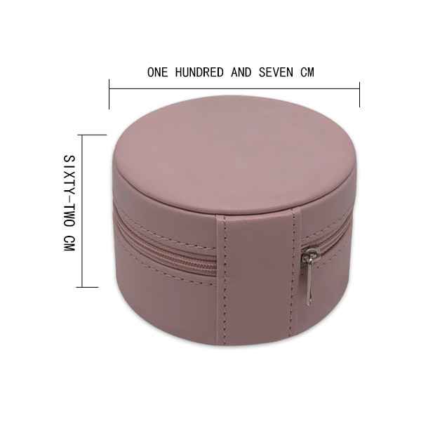 Portable Pink Round Leather Jewelry Case Box With Mirror Images |
